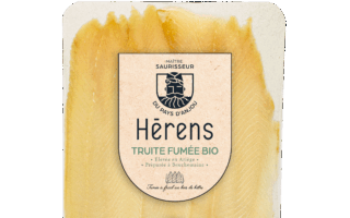 Tranches de saumon cru issues de filets entiers (produit non reconstitué) dressées en assiettes individuelles de 70g préservées entre feuilles de papier Marinade à l'huile d'olive vierge extra et au jus de citron