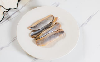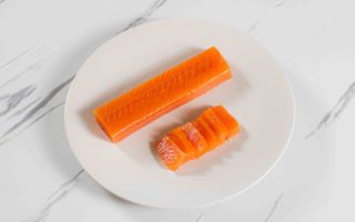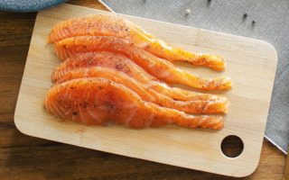 Raw preparation of tuna and white fish, chopped, seasoned, formed into a puck, vacuum-packed and frozen.